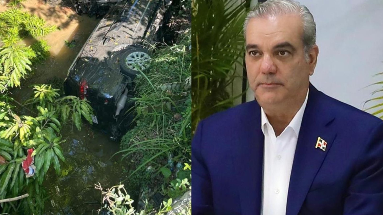 Le communiqué précise que le président Luis Abinader ne se trouvait pas dans ce convoi. Des images montrent les deux véhicules renversés dans ce qui semble être un ravin en bordure de route.